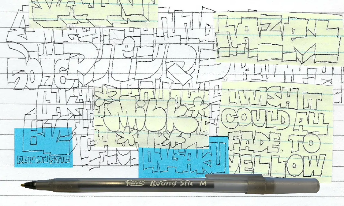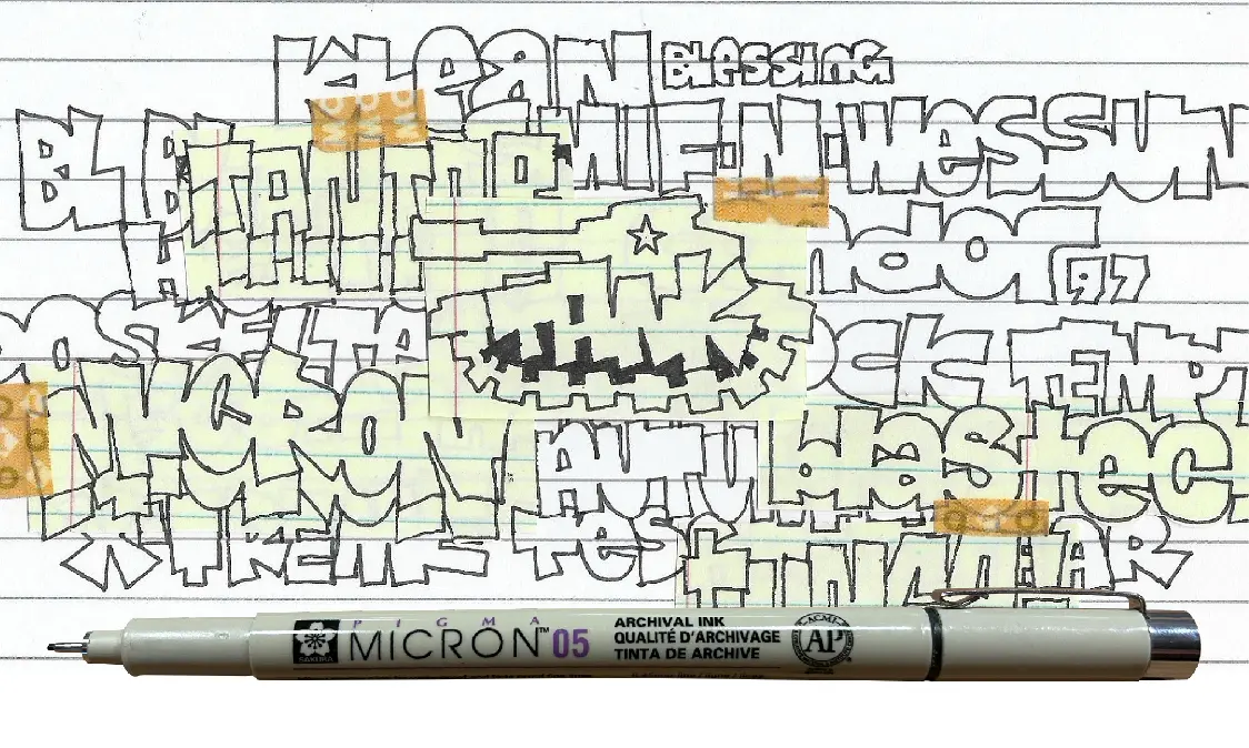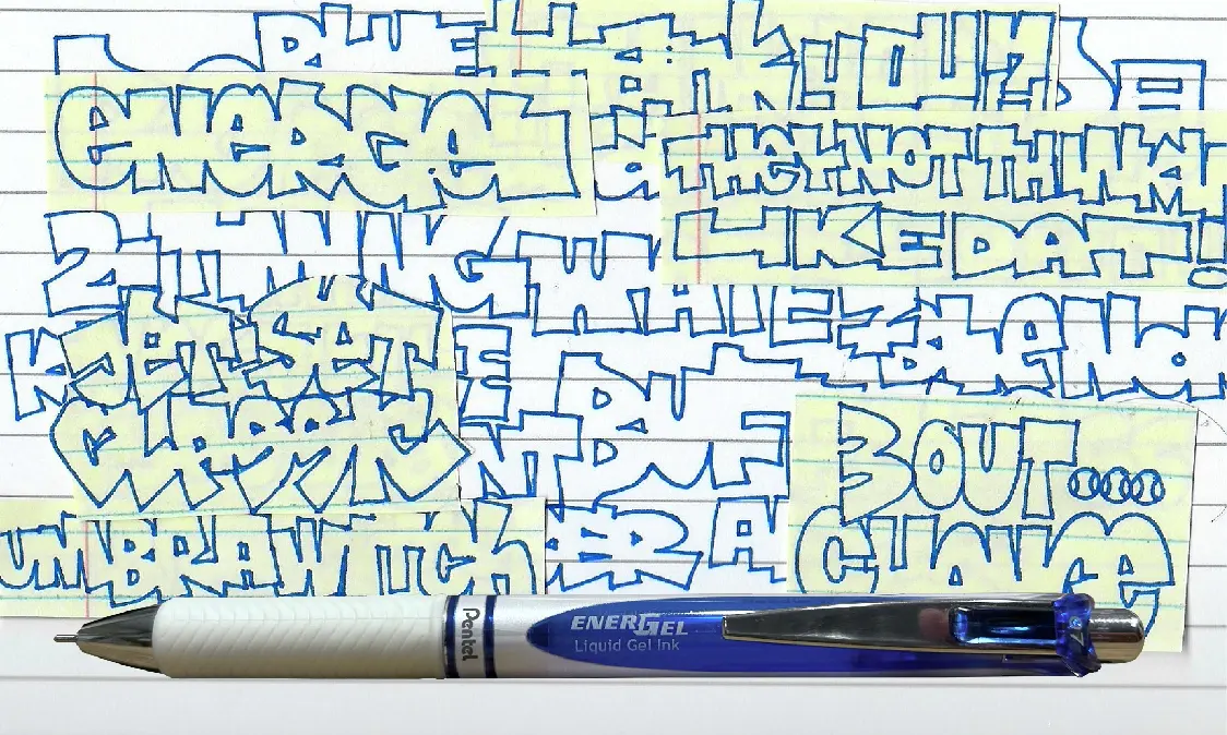 That's pretty fun to say. Pentel has a habit of making some world class shit for commoner prices. I originally took one of these from my mum's desk and became obsessed instantly. This is my favorite pen to write words with. Journaling, note-taking, or any kind of long form writing is where this pen is most appreciated. Very smoothy. It's also fun to doodle with too. This is also my favorite pen to do these word collages you're seeing. Pentel makes a couple of pens that really closely resemble this one so inspect the packaging closely (I like the 0.7mm).